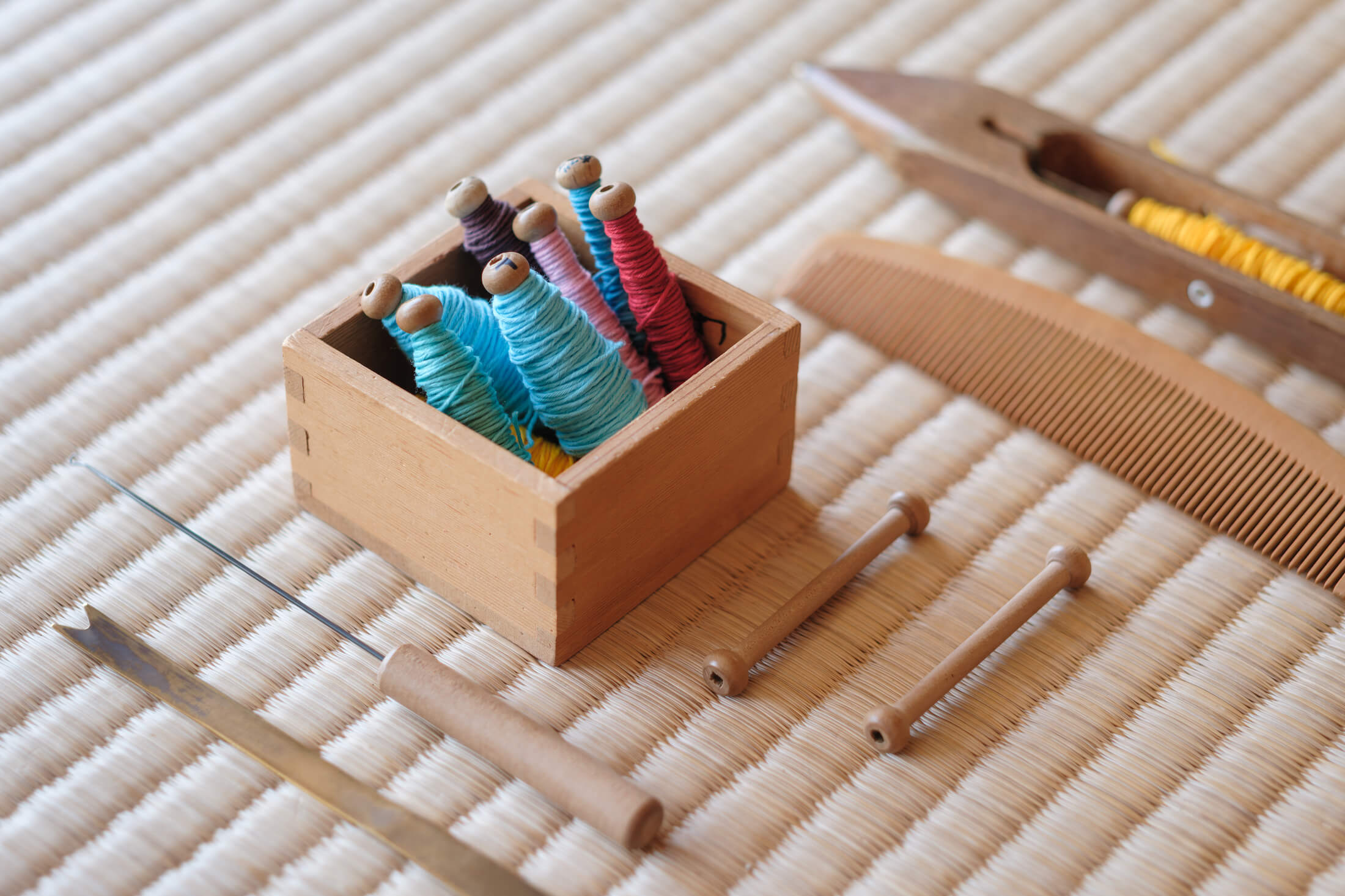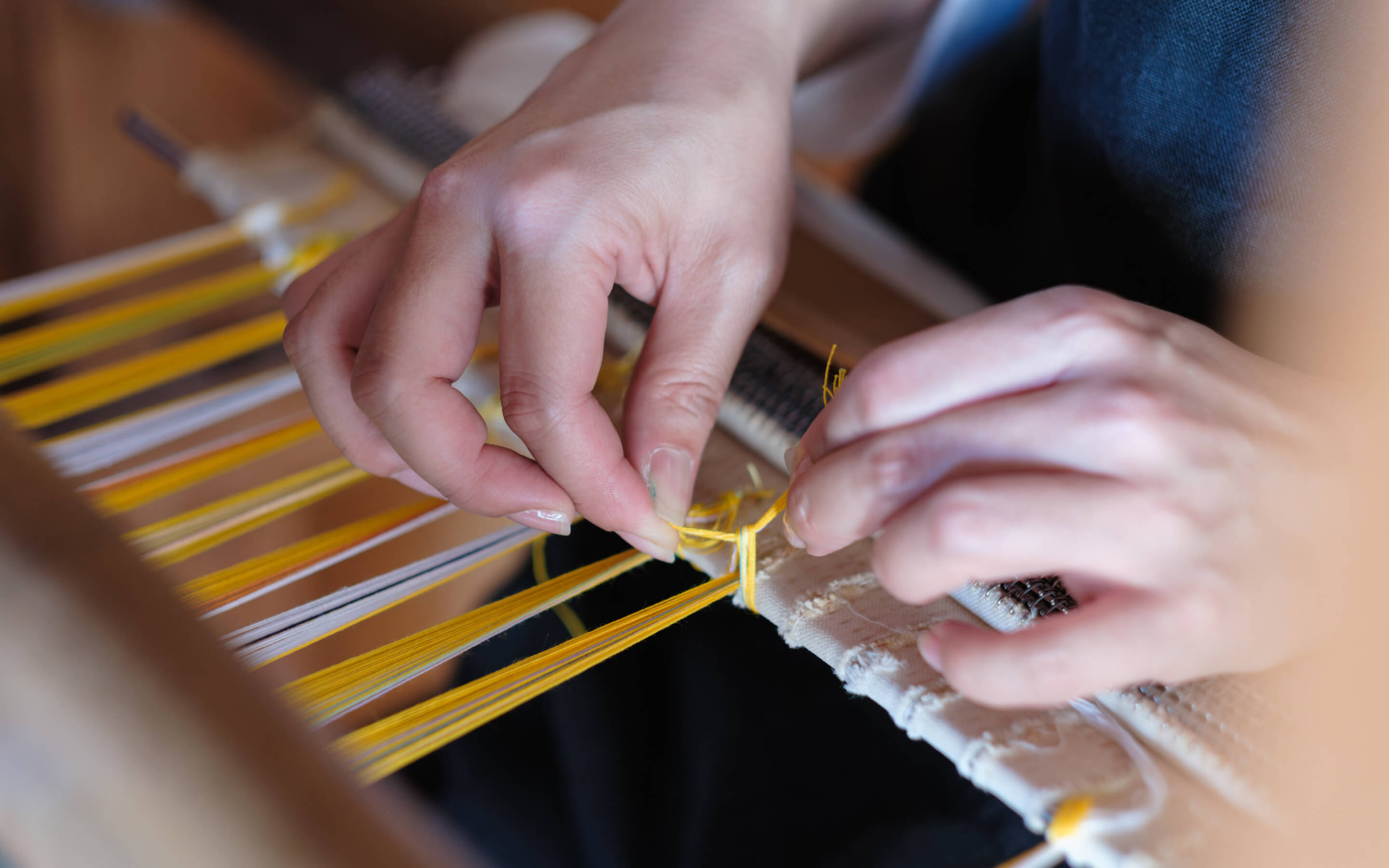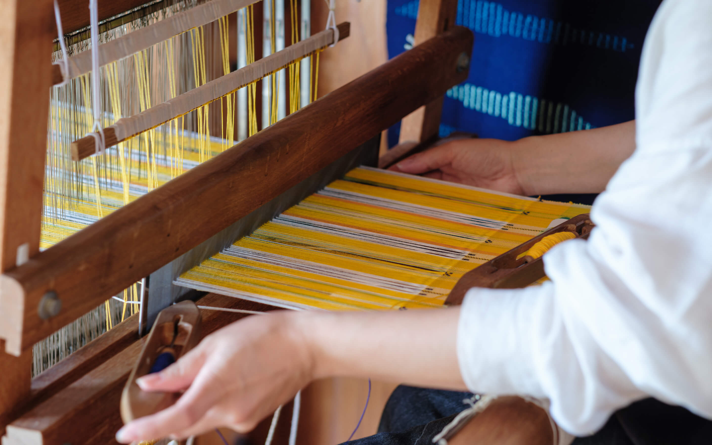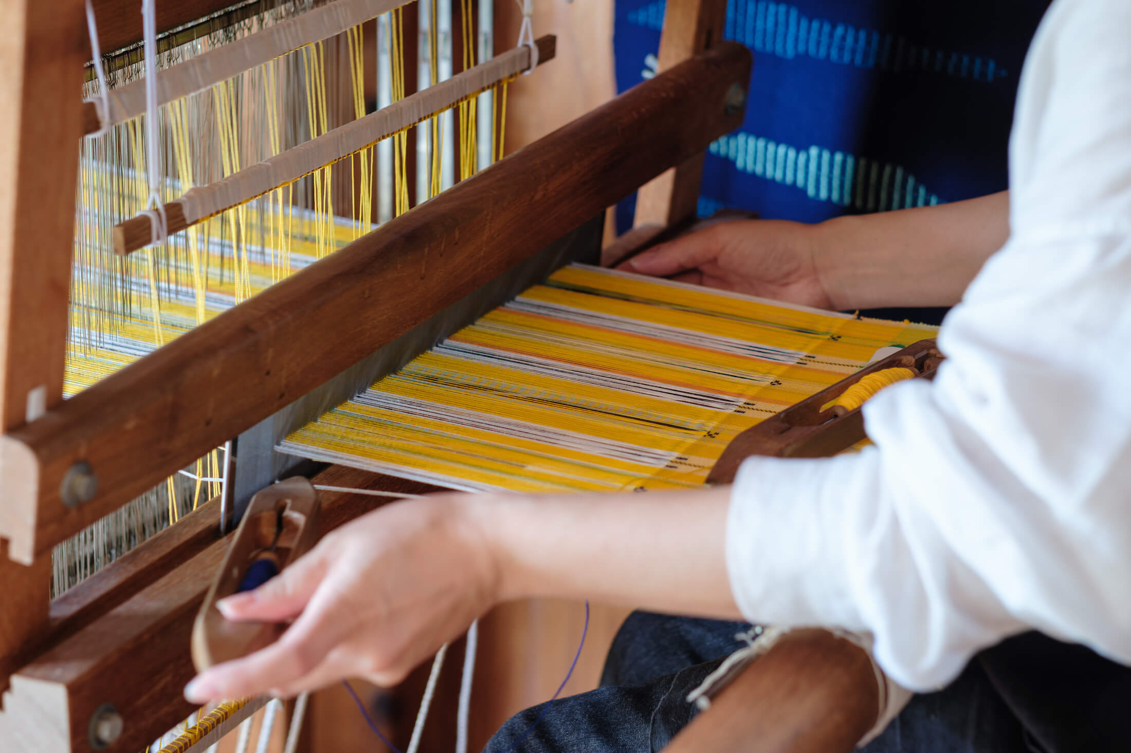 しよんでは、沖縄の伝統的な織技法を受け継ぎながら温故知新をモットーに、染め・織りにこだわったものづくりをしています。
