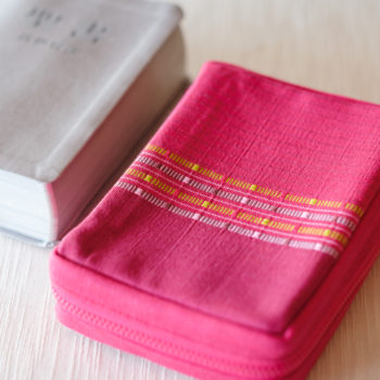 お客様が大切な聖書を持ち歩くことが多く、明るい色をご希望でした。 聖書サイズにピッタリと合う型紙を制作し、ぐるりとファスナーが付いたカバーができあがりました。使う度に手と聖書になじんでくると思います。縫製さんの提案で、内側に小さなポケット、ペン差しもあります … 続きを読む
