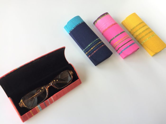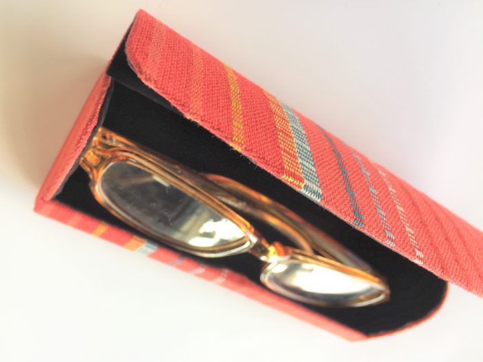 しよんの織り布でメガネケースが出来上がりました。 しっかりとした作りなので壊れにくく、開け閉めもマグネットなので簡単です。