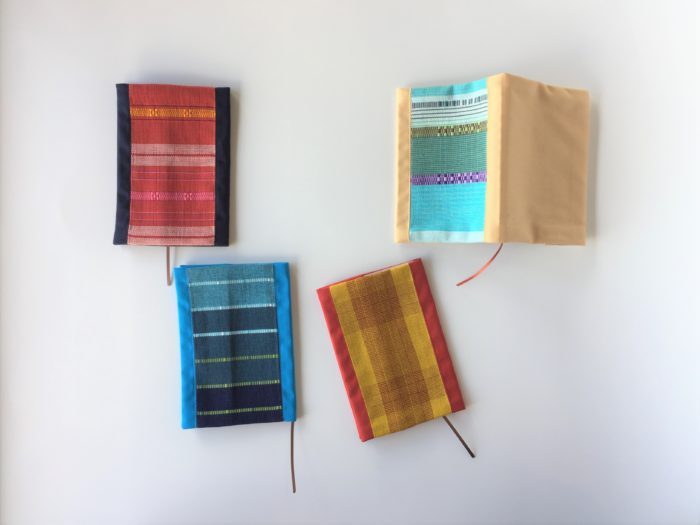 本カバー 織技法:いろいろな織り方 素材:綿 店頭税込価格:2,420円 サイズ: 文庫本サイズ W11.5㎝/H16.5㎝/28g 山城恵美子 作