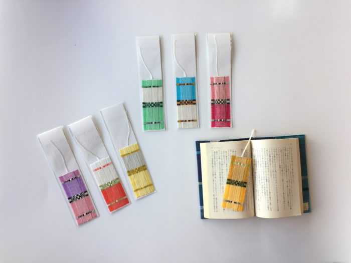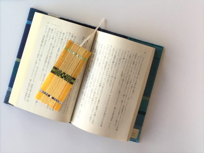 本のしおり 織技法:ロートン織 素材:綿 店頭税込価格:550円 サイズ: W3.5㎝/H17㎝/2g 山城恵美子 作