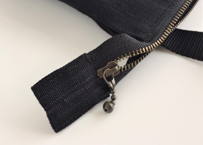 ファスナーを開け閉めする時に持つ部分も手織り生地。
