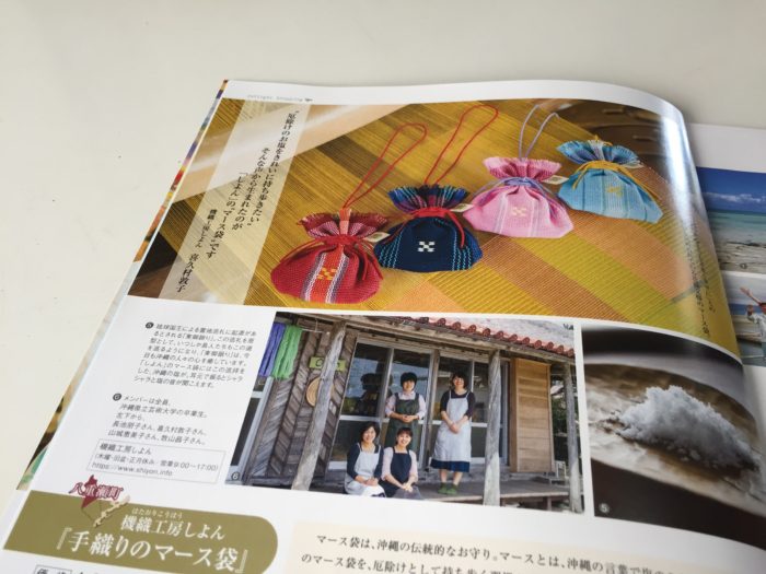 機織工房しよんの手織りマース袋。今年も空を飛ぶ!(^^)!2019年11月~2020年2月までの期間、日本トランスオーシャン航空(JTA)の機内で販売していただいています!