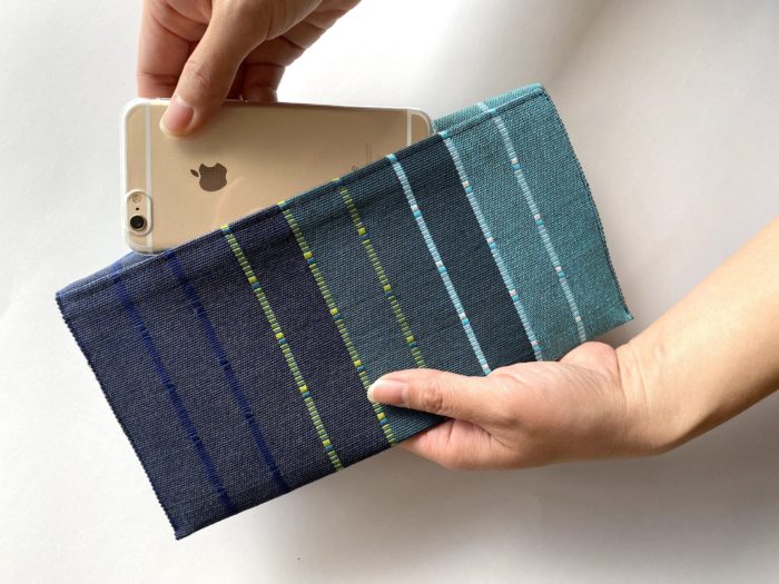 シンプルズベストなクラッチバッグ。全面手織り布で仕上げました。中面には同じ大きさの二つのポケット。長財布も収まる大きさです。
