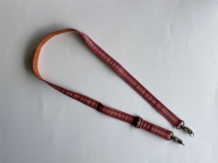 三線ストラップ織技法:ロートン織素材:綿/金具店頭税込価格:11,000円サイズ: W2.5㎝/最長115㎝(アジャスター付き) 喜久村敦子 作