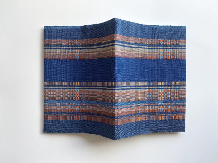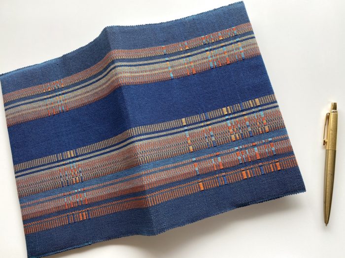 毎年ダイアリーカバーを織っています。今年のデザインはこちら。基調の色は二色のみ。青とオレンジ色。いつもの私でしたらさらに色を加えたくなってしまうところですが…。ここはぐっと我慢。チャレンジの色遣い。私なりに思い通りのものが出来ました。