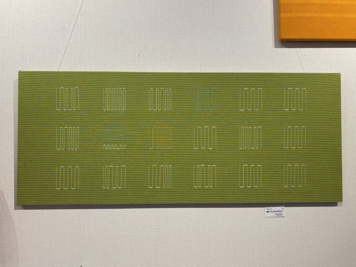 織布パネル36×90織技法:手花織素材:綿・木パネル店頭税込価格:ワンピース 44,000円サイズ: W90㎝/H36㎝ 山城恵美子 作