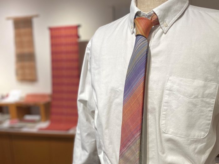 手織りワンピースandネクタイ織技法:平織素材:綿店頭税込価格:ワンピース 96,800円 ネクタイ22,000円 サイズ: ワンピース F 長池朋子 作