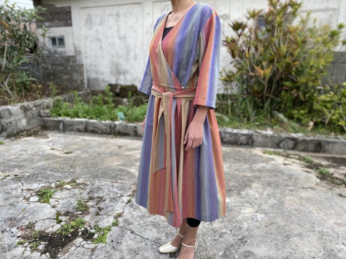 手織りの布で作りました。ワンピース(カシュクール)andネクタイリゾートパーティにお揃いでいかがですか。軽く、風にそよぎます。