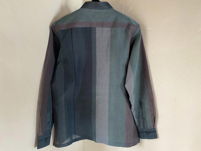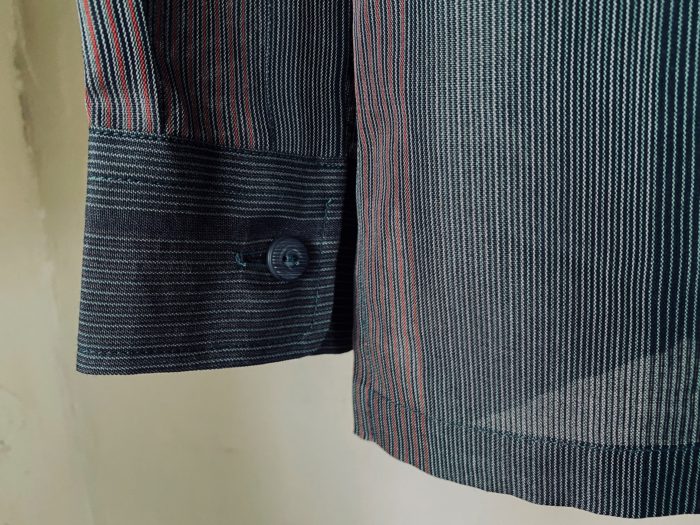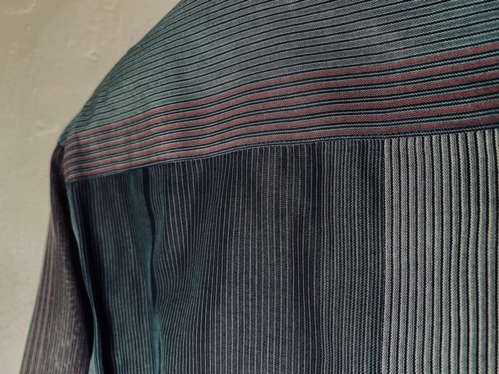 深い緑色・濃い灰色・赤色などのランダムなストライプをお楽しみください。