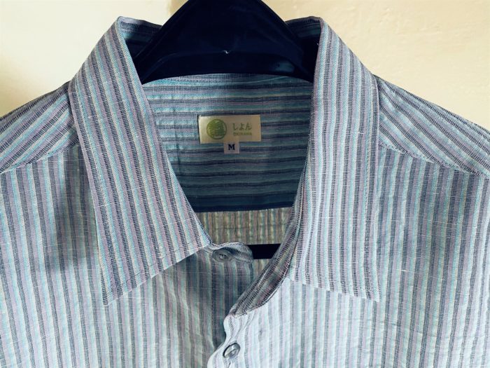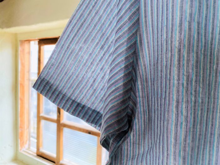 木綿のたて糸に麻糸のよこ糸で織りました。
