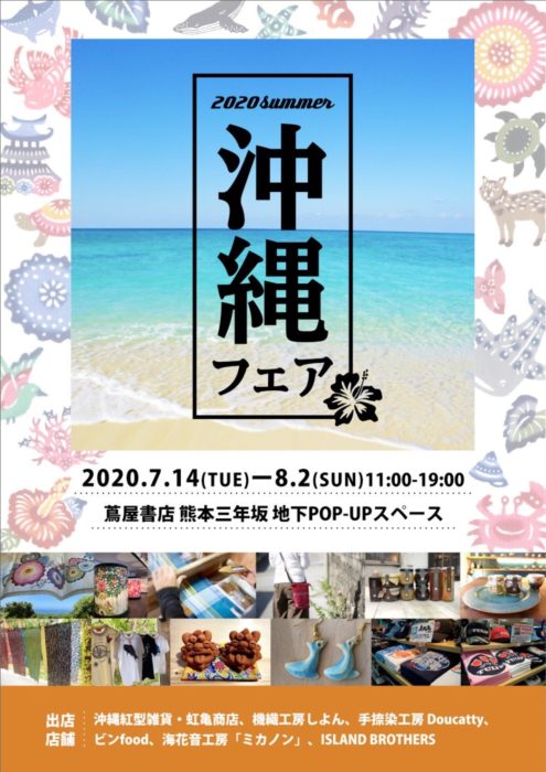 なんと、しよんの織物が熊本へ♪熊本の皆さま。行ける距離だ~!という皆さま。ぜひ蔦屋書店 熊本三年坂で、沖縄をお楽しみください。<沖縄フェア>蔦屋書店 熊本三年坂 地下POP-UPスペース2020/7/14(火) – 8/2(日) 11:00 – 19:00出店店舗:沖縄紅型雑貨・虹亀商店 / 手捺染工房Doucatty / ビンfood 海花音工房「ミカノン」/ ISLAND BROTHERS / 機織工房しよん