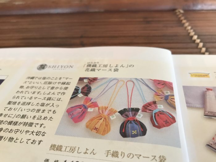 機織工房しよんの手織りマース袋。今年も空を飛ぶ!(^^)!2020年11月~2021年2月の期間、日本トランスオーシャン航空(JTA)の機内でマース袋をご購入いただけます。