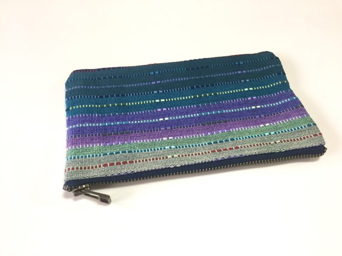 「お札が入る大きさで、ファスナーのシンプルな袋をつくってほしい」というご依頼があり製作しました。カードやレシートも入れるかも、ということで厚みのある手織り生地を使い、お札が出し入れしやすいよう少しゆとりをもたせたサイズに仕上げました。