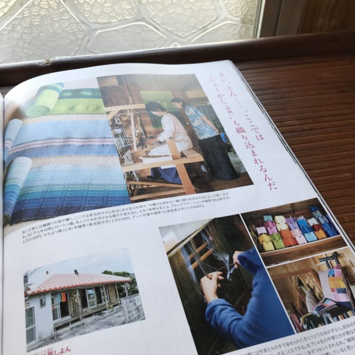 七緒 nanaoh に掲載していただきました。“南の色に誘われて”テキストレーターのはらだ有彩さんが沖縄のあちらこちらをまわって書かれています。機織工房しよんにも来てくださり、半巾帯も載せていただいています。ぜひご覧ください。