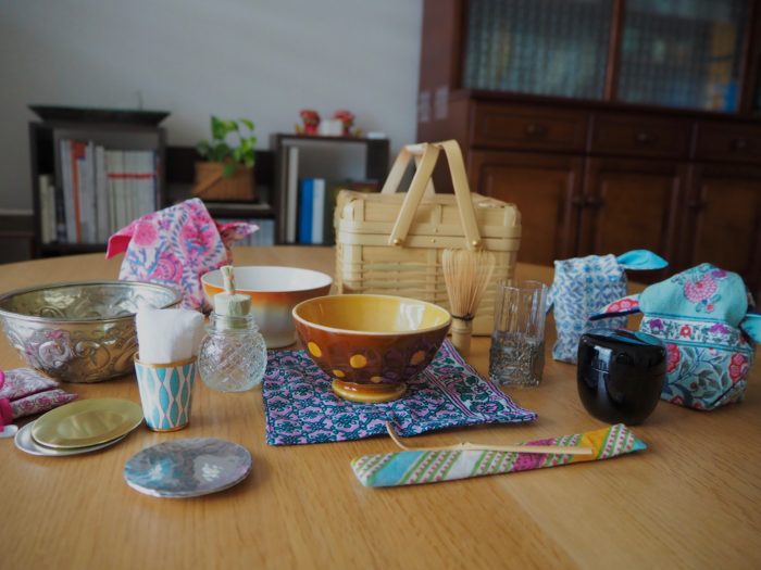 こちらのお茶道具に似合う風呂敷を。とご注文をいただきました。