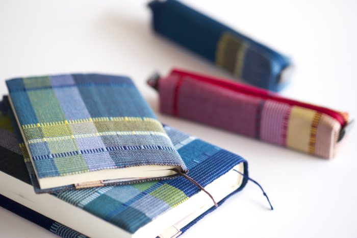木綿の手触りの良い織布でブックカバー・ペンケースを作りました。
