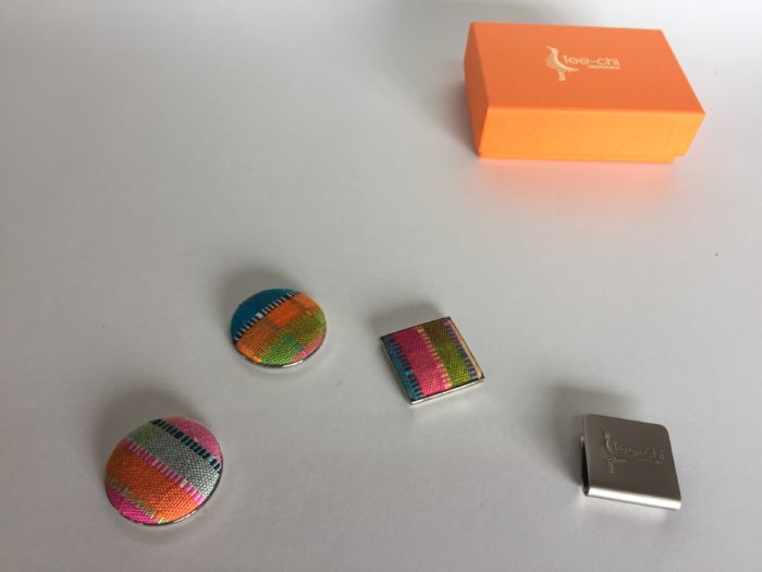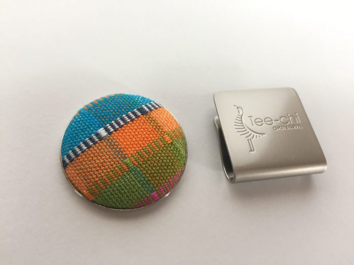 手織りの布でボールマーカーを作られたのは世界初の試み。 今回はしよんのロートン織で制作いただきました。 しよんならではのCOLORで…というご要望で明るい色とりどりの布を織りました。 ゴルフ場のグリーンにも映える逸品です。ゴルフ好きのお父様へのプレゼントに。