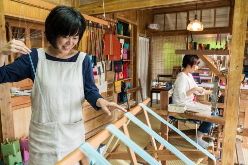 今日は半巾帯を12本分と新しい試みの試織(ししょく)用の経糸を準備していきます。