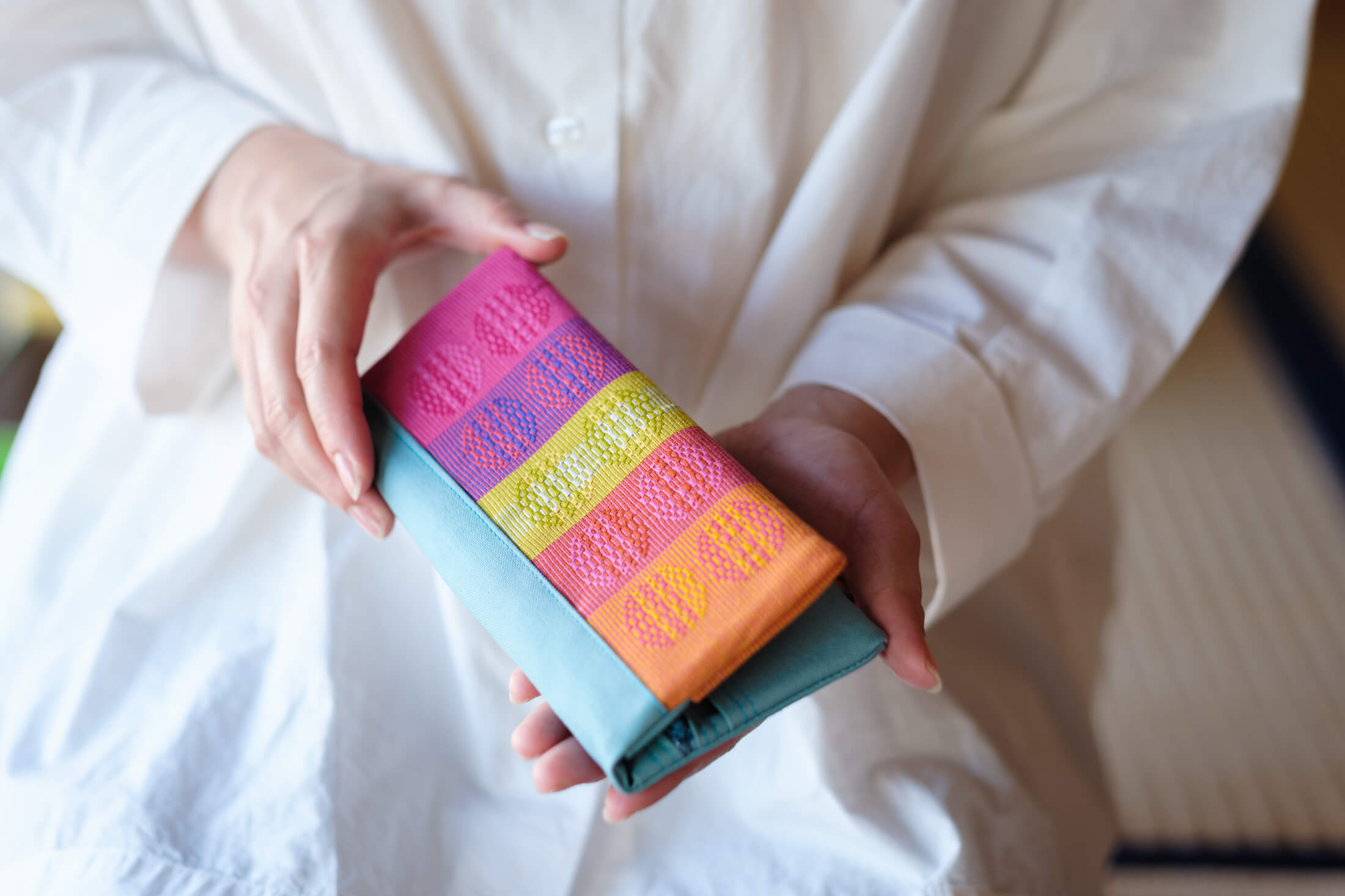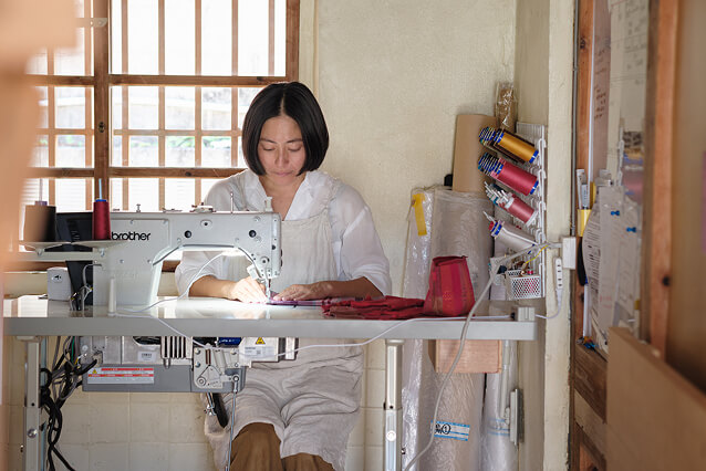 織り布からオリジナル製品に仕立てる。