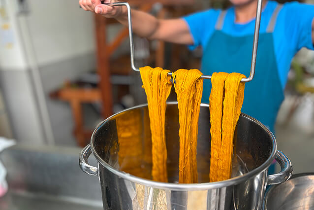 天然染料と化学染料の特性を学び見極めて、その時々で使い分けます。